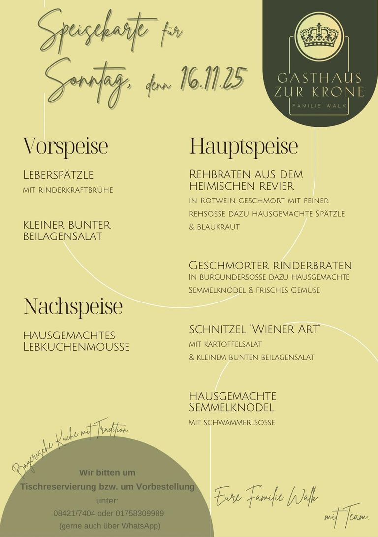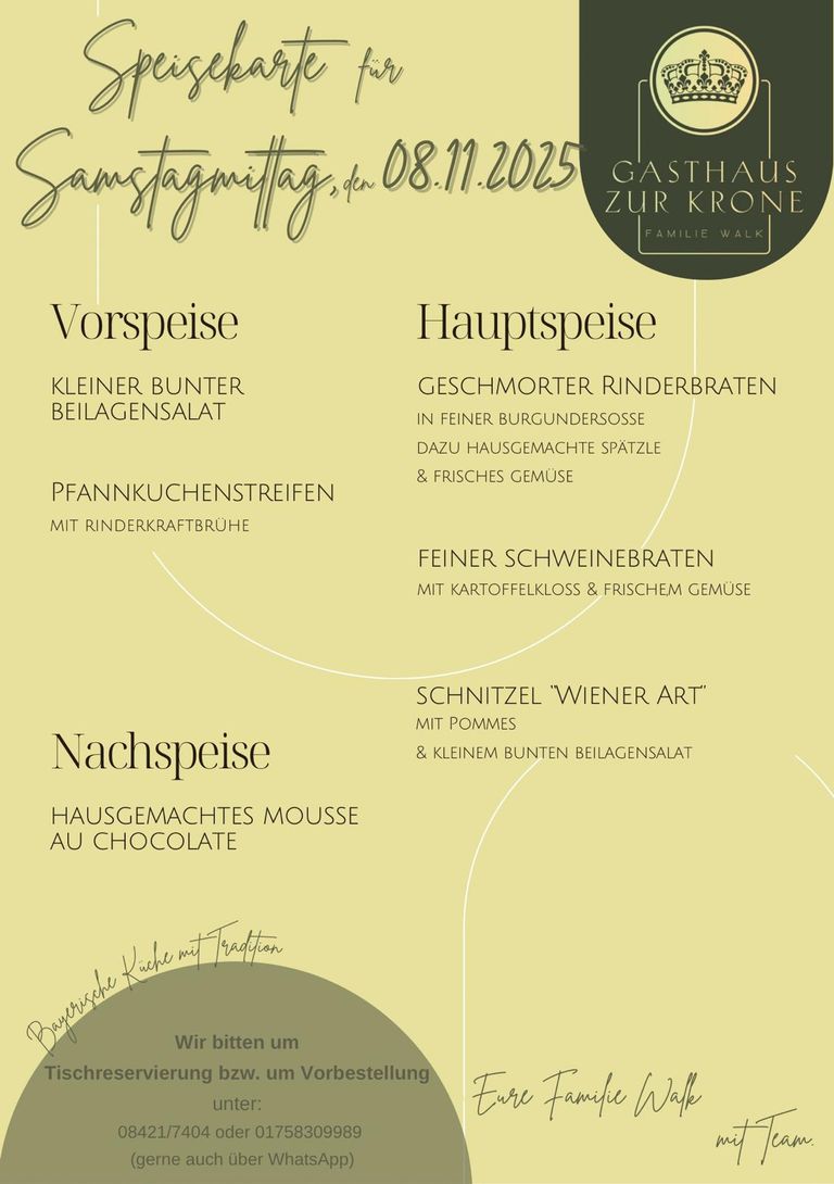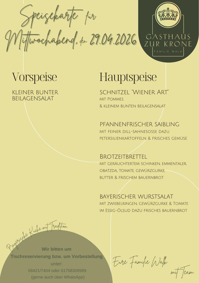 Wir bitten jeweils um Tischreservierung